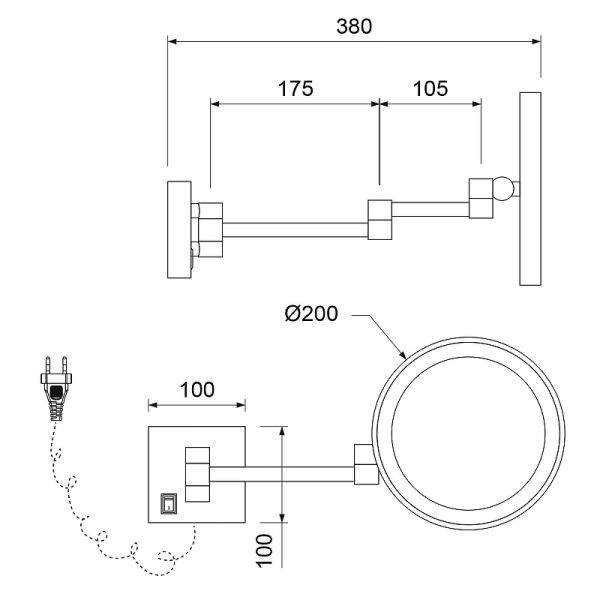 • Зеркало с подсветкой (220в) 5-кратное увеличение - 1 шт.