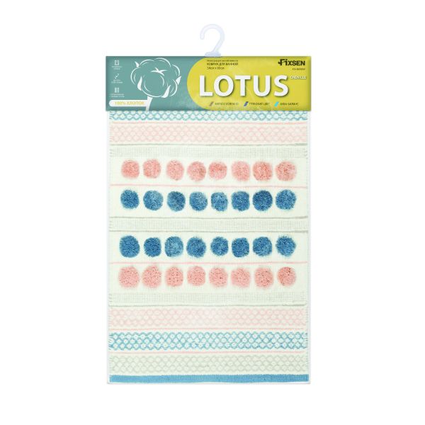 Коврик для ванной 1-ый Fixsen LOTUS, mix (розовый+синий+белый+серый), 50х80см (FX-8030W)