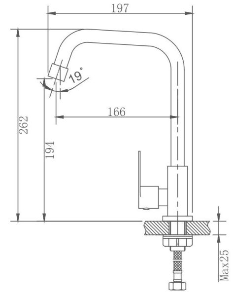 • Высота смесителя:
