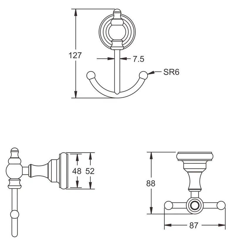 Крючок для ванной комнаты двойной Rose RG1121 хром купить
