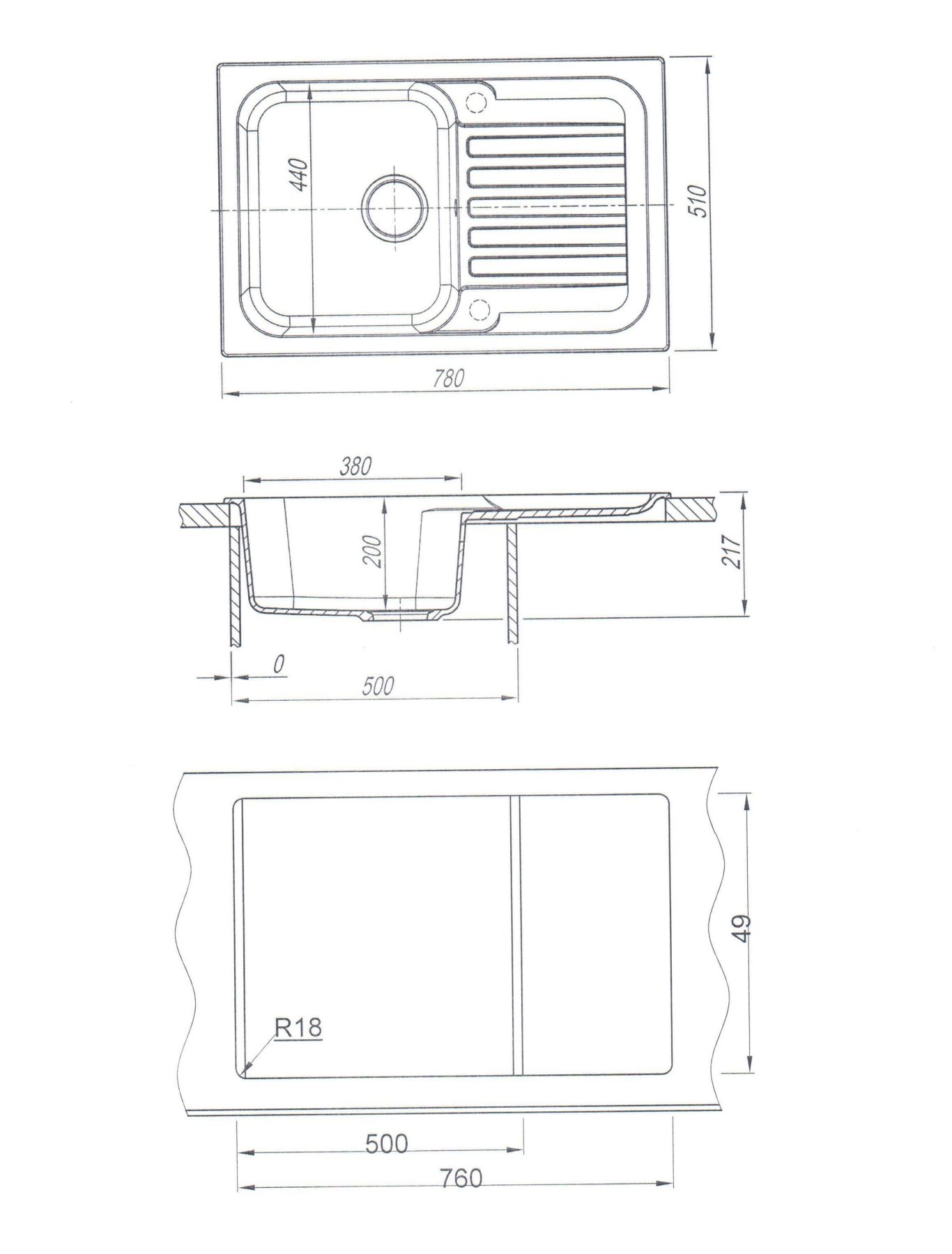 Отводная арматура с выпуском 3 1/2" (D=90 мм) и переливом.Кухонные мойки DR.GANS выдерживают температурные перепады в интервале от -40 до +110 С. Кипяток не повредит вашу мойку.