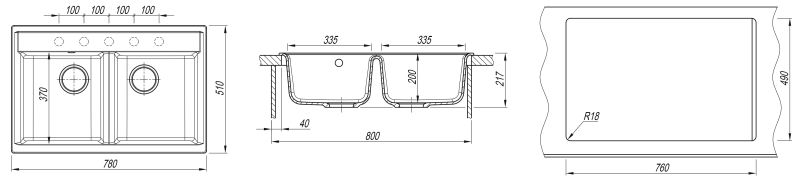 Отводная арматура с выпусками для двух одноуровневых чаш 3 1/2" (D=90 мм) и переливом.Кухонные мойки DR.GANS выдерживают температурные перепады в интервале от -40 до +110 С. Кипяток не повредит вашу мойку.