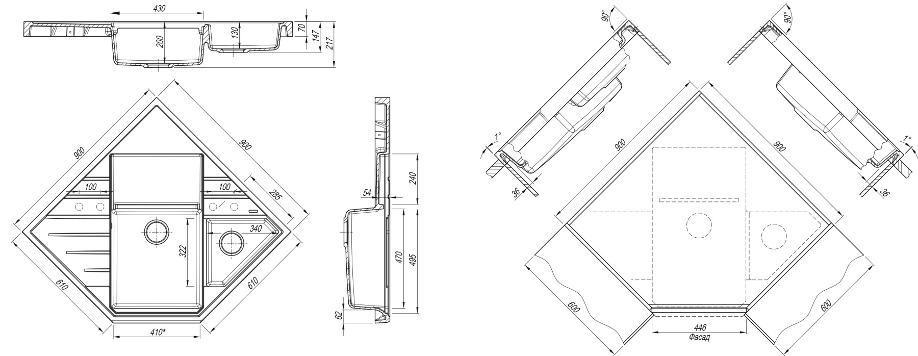 Отверстия под смеситель:нет