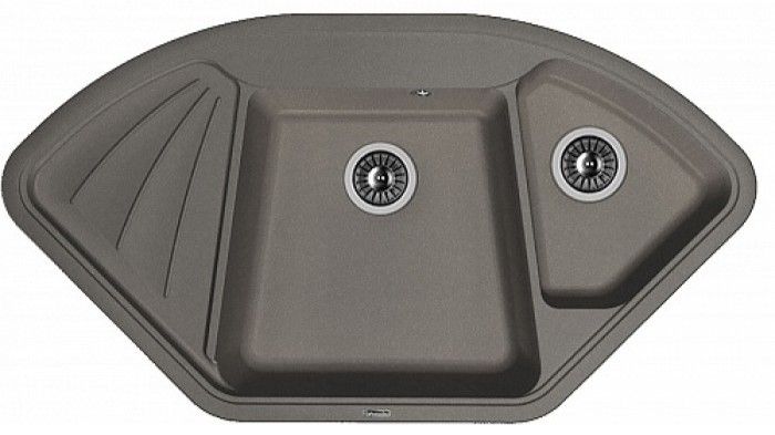 Угловая врезная мойка с двумя чашами для кухни Florentina Капри изготовлена из композитного материала.