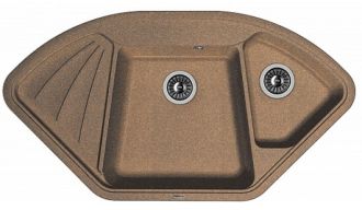 Угловая врезная мойка с двумя чашами для кухни Florentina Капри изготовлена из композитного материала.