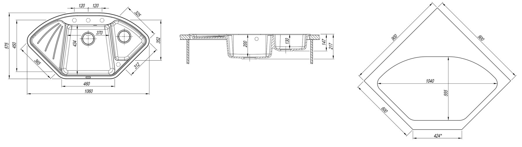 • Отверстия под смеситель: