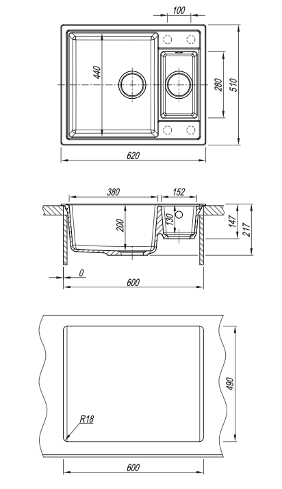• Современная мойка с малой чашей;