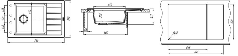 • Мойка с просторной чашей и плоским крылом;