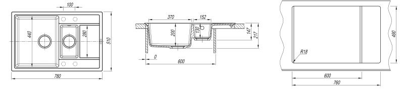 • Габариты нетто ( ДхШхВ) 780х510х217 мм