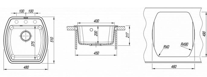 В Нире 480 предусмотрено 3 отверстия под смеситель, дозатор, или крана под питьевую воду, в зависимости от того, в каком месте вы хотите поставить смеситель, выбивается или высверливается отверстие (см.схему)