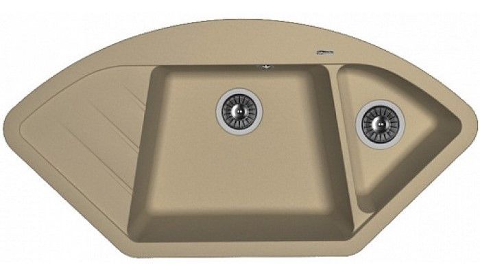 Угловая мойка классической формы с двумя чашами для кухни Florentina Веста изготовлена из композитного материала.