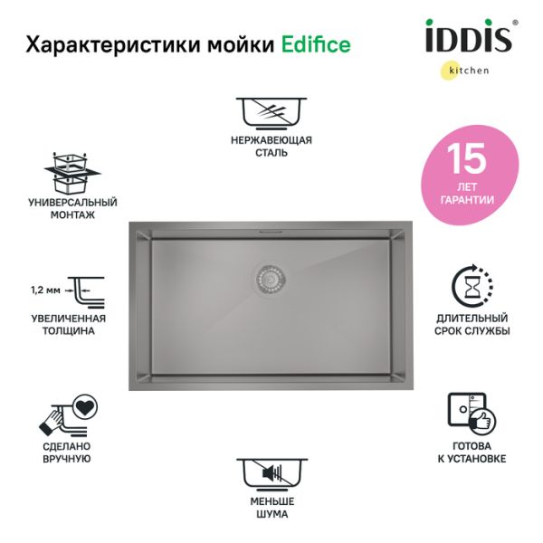 Кухонная мойка IDDIS Edifice EDI74G0i77 74см графит купить