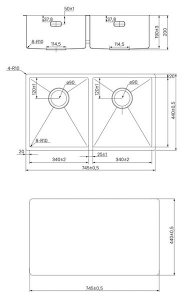 Произведена ручным методом – идеальная геометрия с малым радиусом скругления углов увеличивает рабочее пространство, сохранена толщина стального листа. Удобно мыть много посуды и крупные предметы.