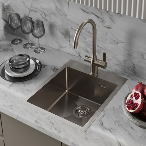 Мойка Haze отличается современным дизайном и ручным методом производства, что позволяет добиться идеальной геометрии – малый радиус скругления углов увеличивает рабочее пространство без «слепых» зон. Удобно разместить много посуды и мыть крупные предметы. Подходит для шкафа от 45 см.