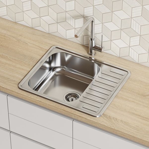 Прямоугольная мойка из нержавеющей стали с полированным покрытием с крылом, с сифоном в комплекте – продуманное решение, готовое к использованию.