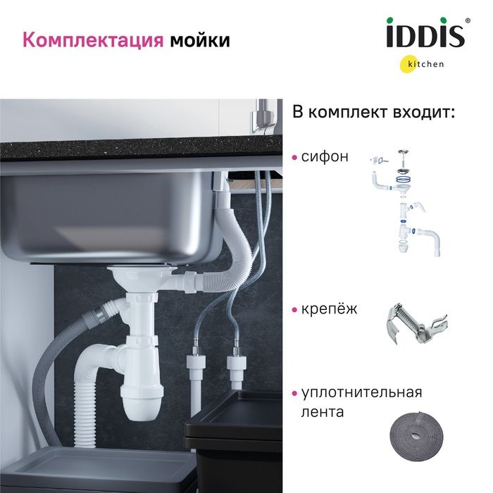 Кухонная мойка IDDIS Suno SUN50S0i77S с сифоном 50см сталь купить