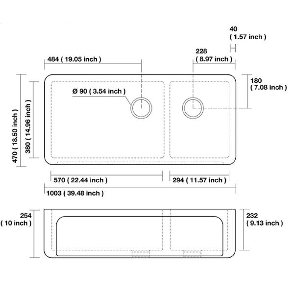 Размер мойки (ШхВхГ): 100.3x25.4x47 см.