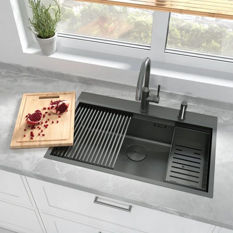 Например, ролл-мат можно использовать для сушки бокалов или хранения влажной губки, коландер — для разморозки продуктов, а разделочная доска — для нарезки продуктов, и все это — прямо над мойкой.