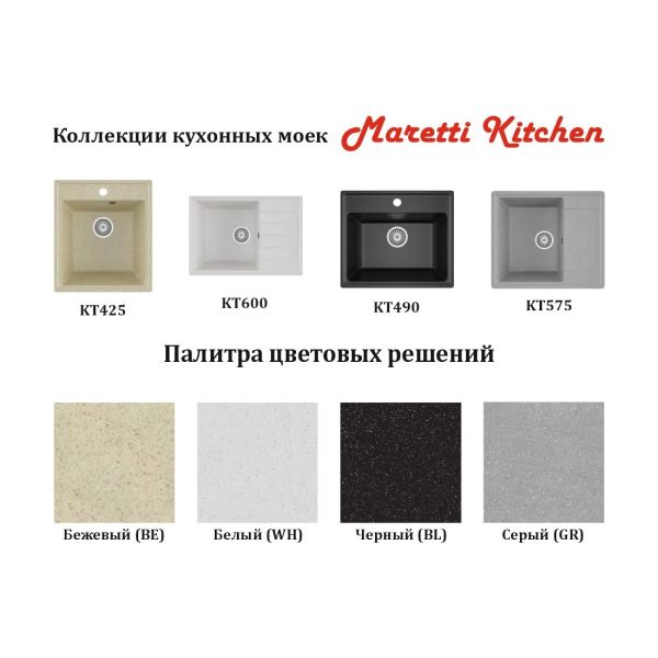 Кухонная мойка Maretti Kitchen KT490-WH, белый