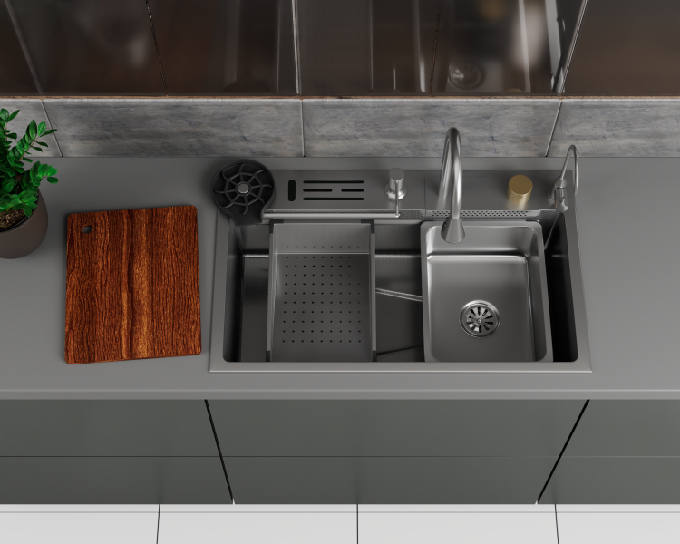Кухонная мойка многофункц. DQ нерж.сталь сатин в комплекте со смесителем и аксессуарами (DKS754604)