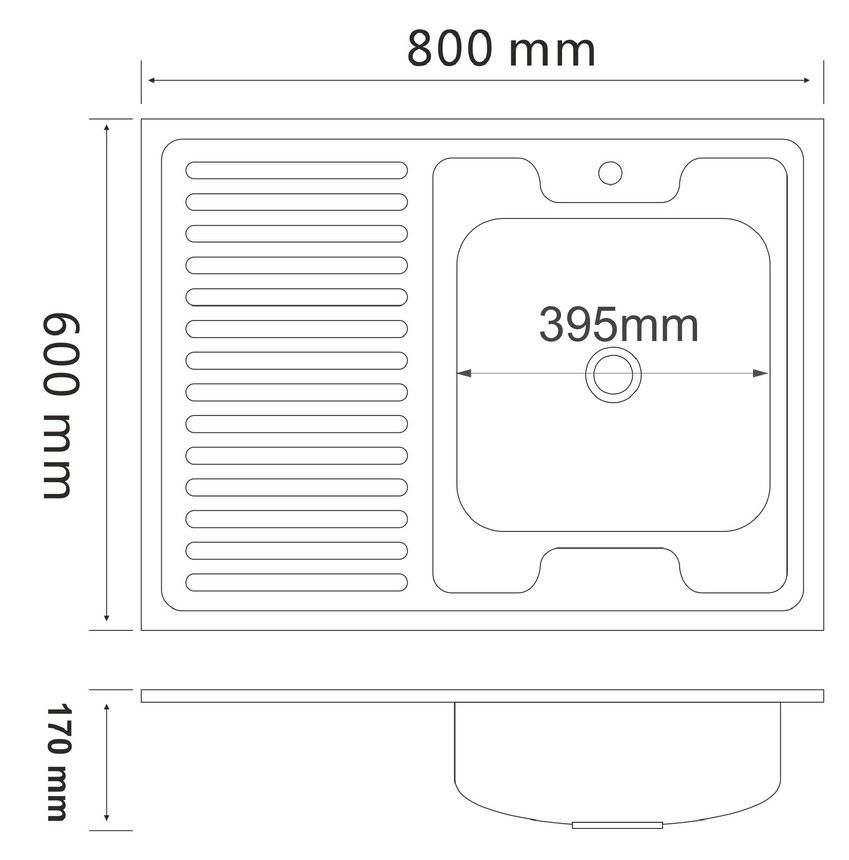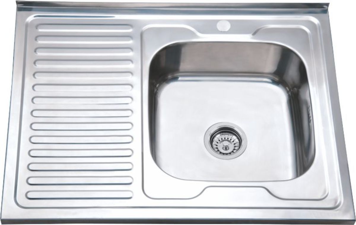 Кухонная мойка глянцевая правая, толщина 0,6мм, размер 800x600мм, глубина чаши 170мм, материал нержавейка, в комплекте евро сифон