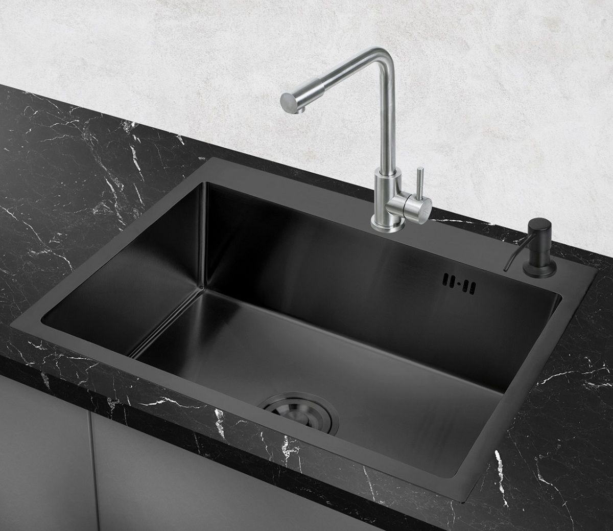 Кухонная мойка РМС MR-5843BL с корзиной и дозатором воронёная сталь купить