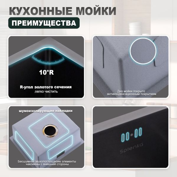 Кухонная мойка Splenka S700.5045.09, графит. Размер - 500*440*220мм. Кухонные мойки Splenka от... Подробнее