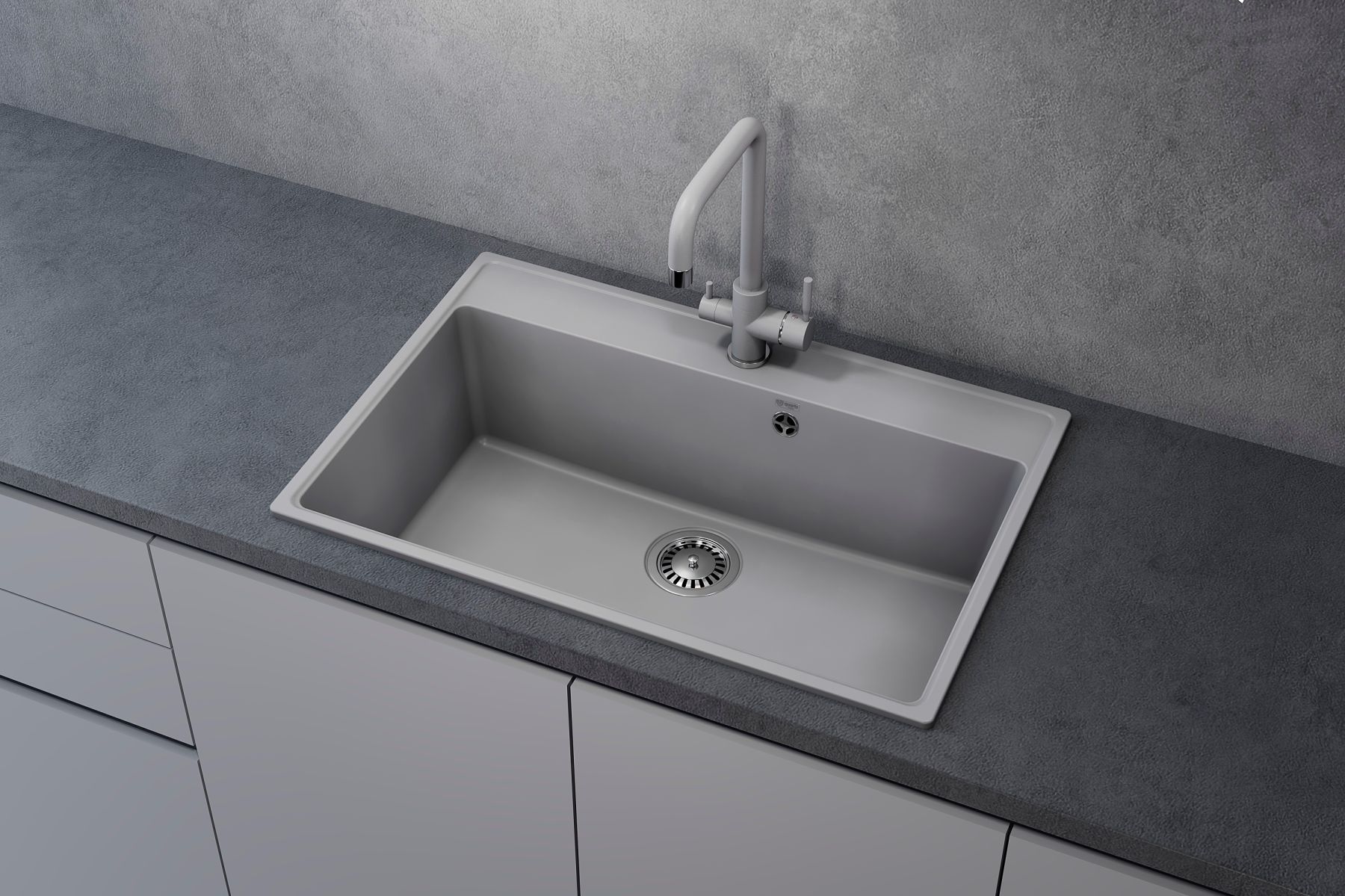 Кухонная мойка ULGRAN Quartz Forte 760 является односекционной, с отверстием под смеситель, при этом существуют 4 дополнительно намеченных отверстия под аксессуары (дозатор или клапан-автомат). Мойка устанавливается в кухонный шкаф шириной от 80 см. В комплектацию входят: сливная арматура серии «Элит» с гофротрубой, технический паспорт и гарантийный талон. Данная кухонная мойка имеет современный минималистичный дизайн и легко может стать украшением кухни и настоящим эргономичным центром. Заводская гарантия составляет 7 лет, а срок службы данной мойки, при соблюдении основных правил ухода за ней, составляет более 20 лет.