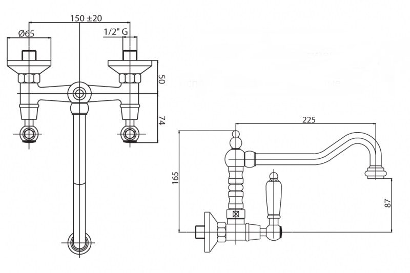 Кухонный смеситель настенного монтажа, бронза Cezares FIRST-LLP-02-Bi купить