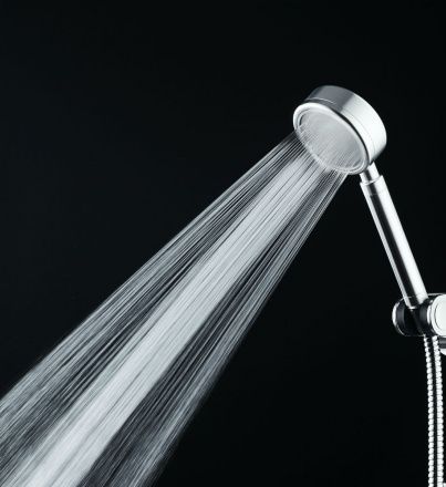 Ручной душ (d 80 мм) - один режим струи. Материал - алюминий. Цвет - матовая сталь.