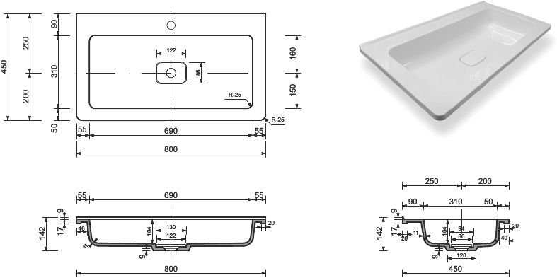 Мебельная раковина Эстет Каре 80 Люкс СС-00002263