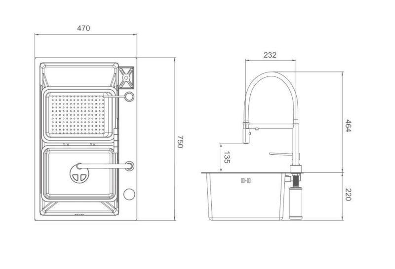 - Удобство использования: Эргономичное расположение краника, диспенсера и других элементов обеспечивает простоту, комфорт в эксплуатации и порядок на кузне. Толщина стенок: верх 3мм, чаша 1мм.