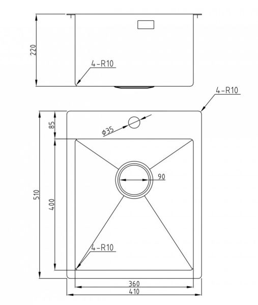 - Диаметр слива: 9 см