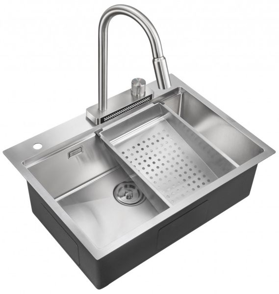 Мойка для кухни Milacio Denia 68 Steel MC.77410 в комплекте со смесителем и коландером нержавеющая сталь купить