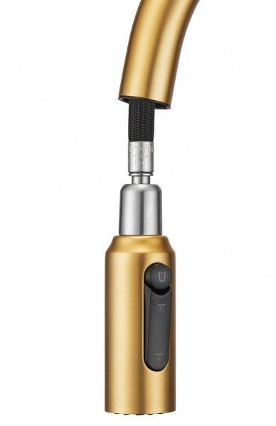 Мойка для кухни Milacio Denia 68 Steel MC.77418 в комплекте со смесителем и коландером брашированное золото купить