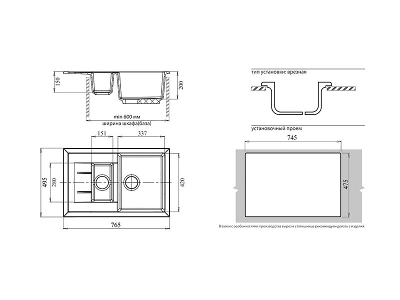Мойка кухонная GranFest Иней Quadro Q-775 KL иней купить