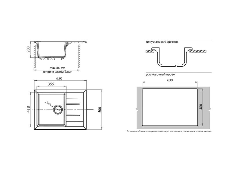 Установочный проем: 630*480 мм