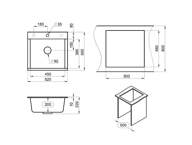 Кухонная мойка Granula 5201 в оттенке алюминиум — это практичное и стильное решение для вашей кухни. Мойка прямоугольной формы с размерами 520x500 мм идеально подходит для установки в шкаф шириной 500 мм. Одна просторная чаша размером 450x385 мм и глубиной 200 мм позволяет комфортно использовать мойку как для мытья посуды, так и для подготовки продуктов.