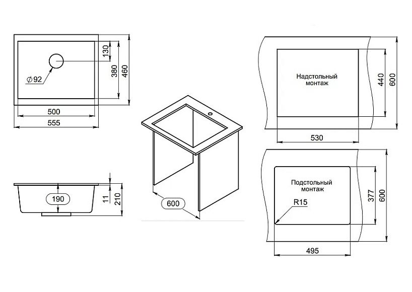 Мойка кухонная Granula 5551, БАЗАЛЬТ