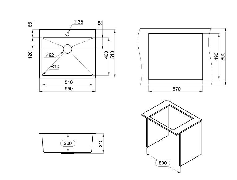 Мойка кухонная Granula 5951, ГРАФИТ МАТОВЫЙ