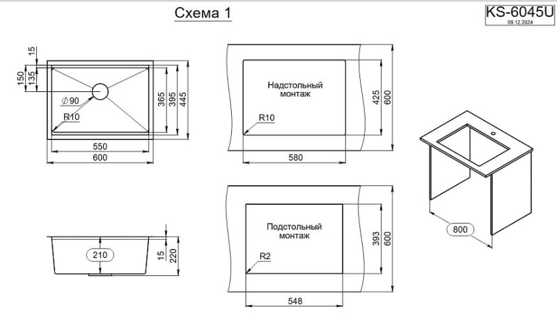 Мойка кухонная Granula 6045U, ЧЕРНЫЙ МАТОВЫЙ