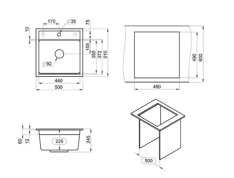 Мойка кухонная Granula Kitchen Space 5002, ШВАРЦ