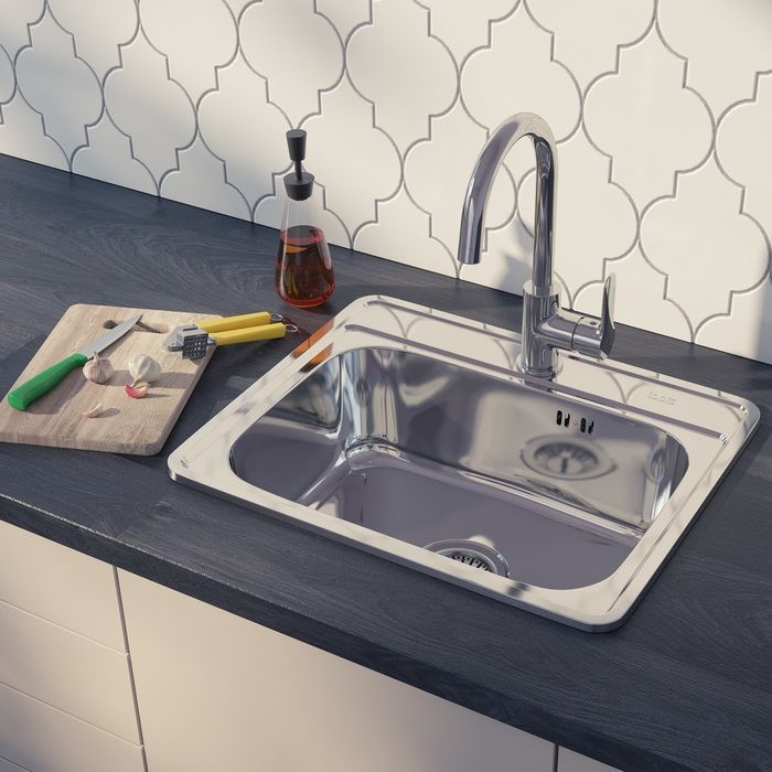 Качественная нержавеющая сталь толщиной 0,6 мм обеспечивает надежность, ударопрочность мойки и ее стойкость к износу.