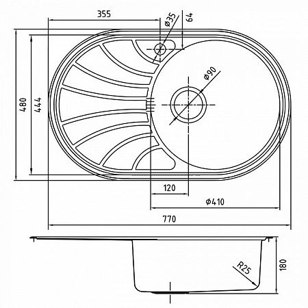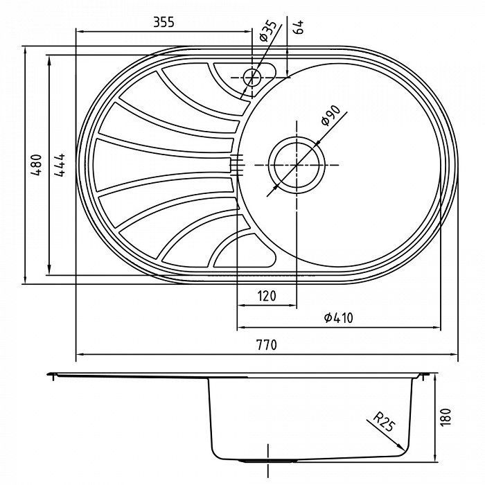 Комплектация: уплотнительная прокладка, крепления; Размер мойки: 770х480 мм; Сталь: нержавеющая, 0,8 мм; Ширина шкафа: от 45 см; Глубина чаши: 180 мм
