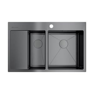Мойка кухонная Omoikiri Akisame 78-2-GM-R нерж.сталь/вороненая сталь
