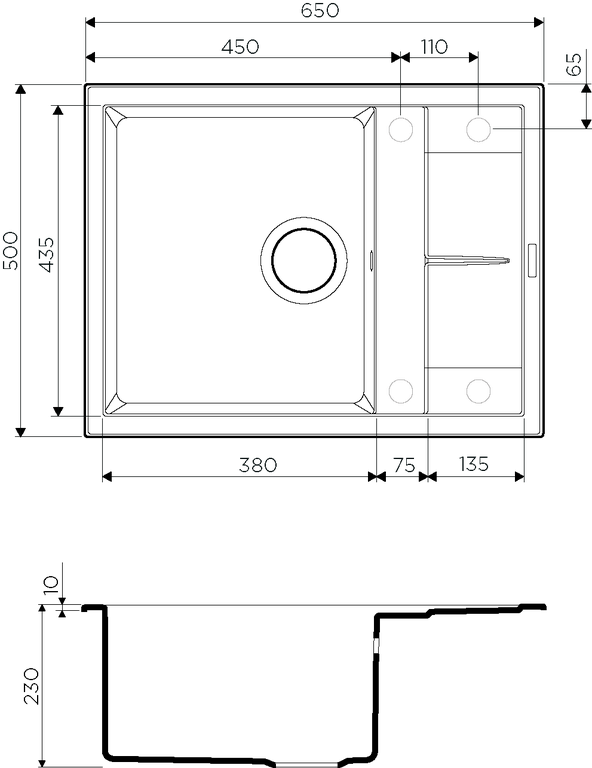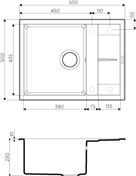 • Отверстия под смеситель: