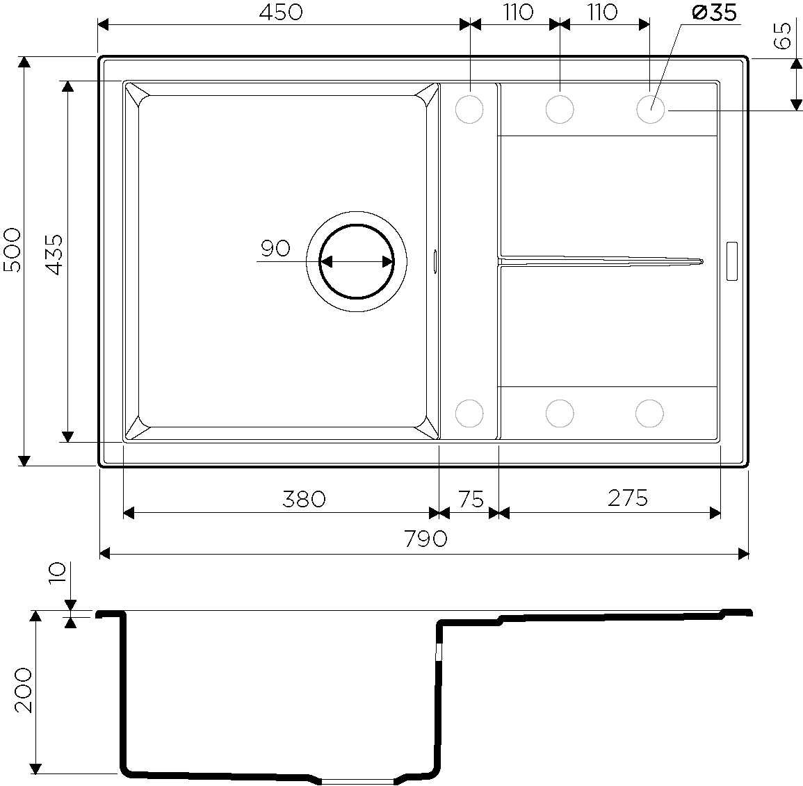 • Гарантия на мойки из материала «Tetogranit» -15 лет; • Метод производства: литье; • «Tetogranit» – это продукт сочетания натурального гранита и акриловой смолы, в состав которой входит уникальный компонент на основе синтетических волокон Теторон (Япония). Теторон устойчив ко всем видам грибка. Благодаря уникальным свойствам, полимер обволакивает гранит и защищает его от воздействия агрессивных внешних факторов; • «Tetogranit» имеет превосходную сопротивляемость к ударам и царапинам. Мойка прослужит долгие годы, сохранив первоначальный вид; • В состав акриловой смолы входят ионы серебра, которые препятствуют размножению бактерий на поверхности мойки; • Мойка черного цвета создана из материала «Tetogranit Metal». В его составе: акриловая смола и натуральный гранит с добавлением металлических частиц, которые придают блеск и мерцание поверхности мойки. «Tetogranit Metal» отличается максимальной устойчивостью к температурным перепадам, ударам, царапинам и пятнам; • Упаковка обеспечивает максимально безопасную транспортировку. Мойка упакована в картонную коробку и дополнительно зафиксирована картонными уплотнениями; • В комплект включены крепления, донный клапан; • Идеальное сочетание со смесителями OMOIKIRI Nagano из искусственного камня; Комплектация: • крепления; • донный клапан (автоматический дон- ный клапан приобретается отдельно); • сифон; Упаковка: • картонная коробка; • картонные уплотнения;