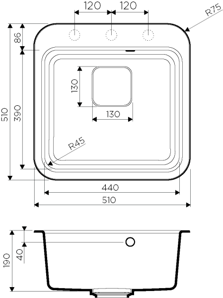 • Отверстия под смеситель: