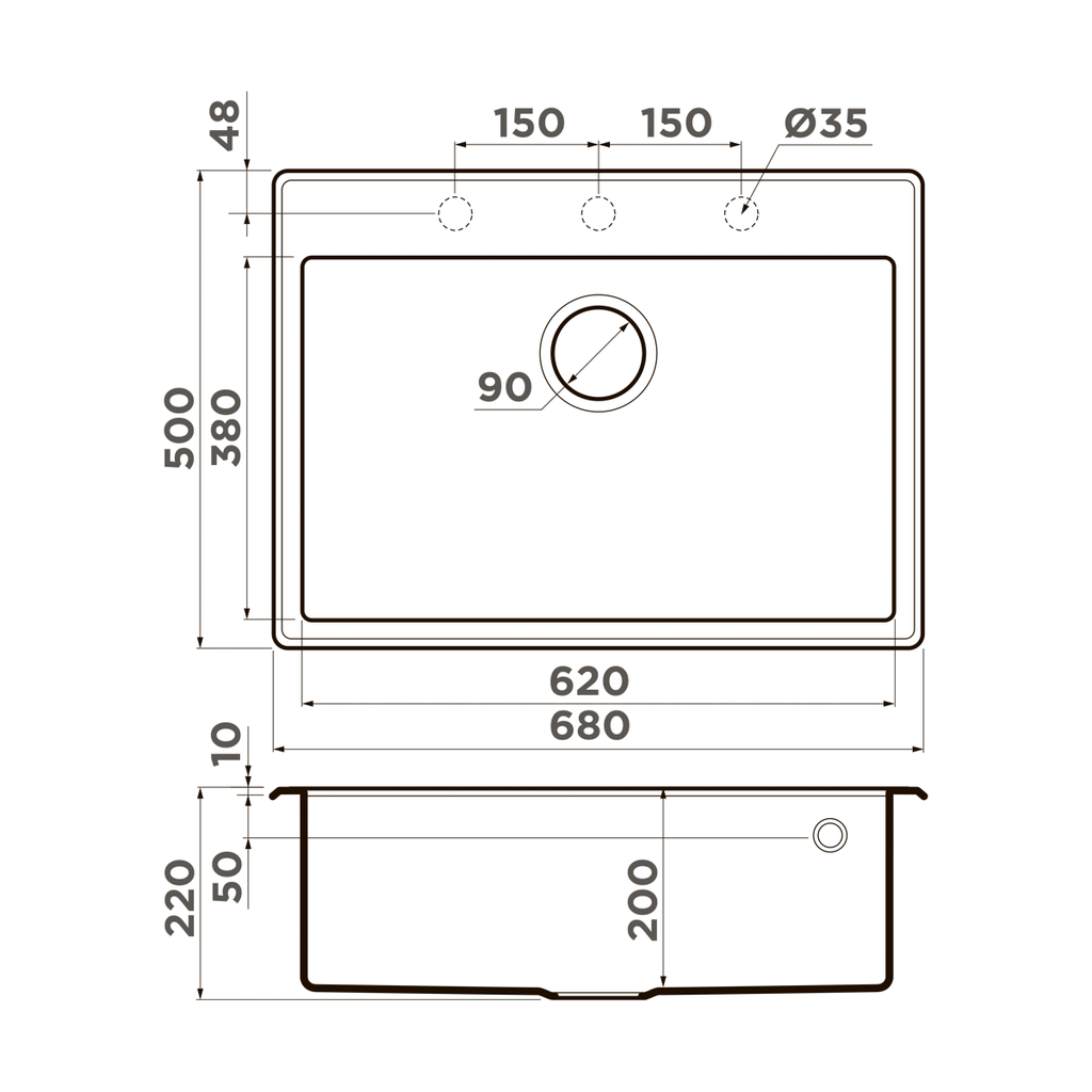 • Отверстия под смеситель: