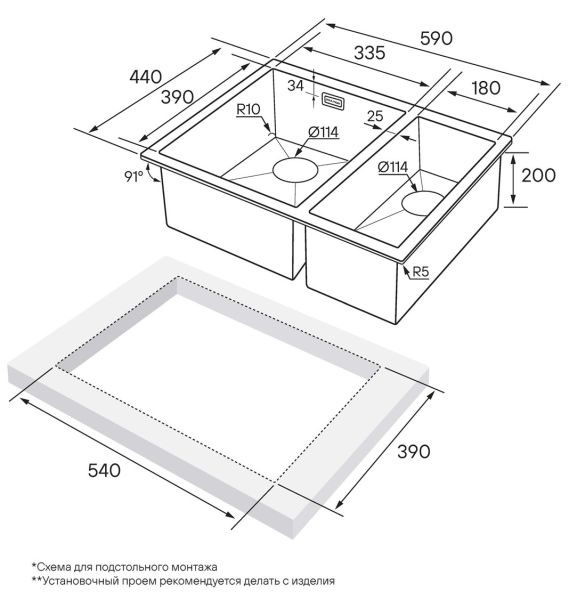 Мойка кухонная из нержавеющей стали, артикул PM545944-BSL304-ая аустенитная нержавеющая сталь имеет низкое содержание углерода. В составе мойки содержится 18% хрома и 8% никеля, что делает данную мойку из нержавеющей стали не подверженной деформации и обеспечивает прекрасные эксплуатационные характеристики.Мойки ANNEX в оттенках BG и GM имеют прочное PVD покрытие, которое нанесено на нержавеющую сталь. Оно особенно устойчиво к появлению царапин и истиранию, не содержит микротрещин и является экологически чистым.Имеет шумопоглощающее покрытие Stille® на внешней стороне чаши;